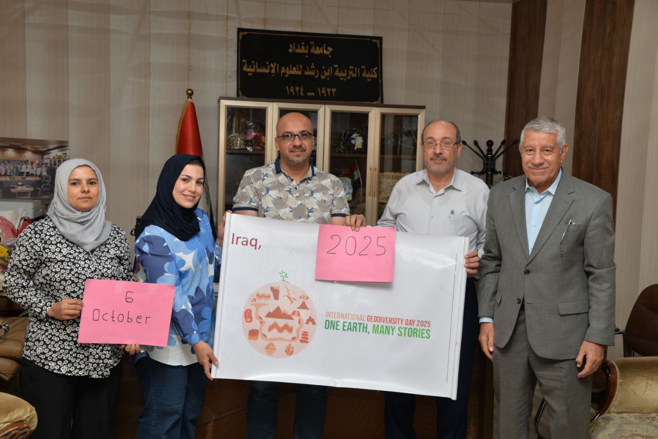 On the occasion of World Geological Diversity Day, Ibn Rushd College of Education for Humanities, University of Baghdad, organized a workshop titled “Elements of Geological Diversity: Rocks, Minerals, Landforms, Fossils, Soil Types, and Water Resources”. The workshop was presented by Prof. Dr. Aqil Abbas Al-Zubaidi, member of the International Union for Conservation of Nature, and attended by Dr. Mohammad Abdulwahid Jiyas, Assistant Dean for Administrative and Financial Affairs, along with a number of faculty members, staff, and students of the College.