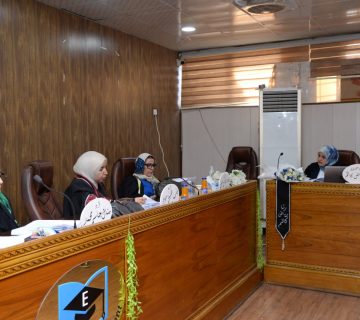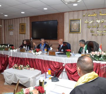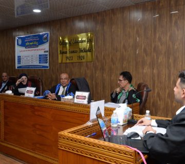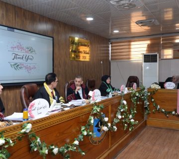 The examination committee consisted of Prof. Dr. Ghada Ali Hadi as Chair, Prof. Dr. Intisar Hashim Mahdi as member and supervisor, Asst. Prof. Dr. Manaf Fathi Abdulrazzaq as member, and Ms. Alaa Jamil Saleh as an external member from the College of Education for Women, University of Kufa.
